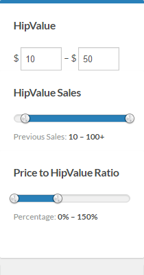 HipValue: Filter your Search results to display only items with a certain HipValue or within a HipValue range.